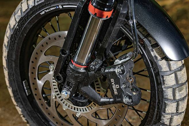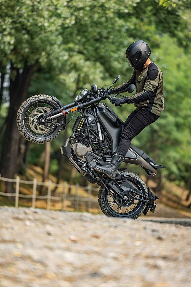 이렇게 완성도 높은 디자인에 다소 귀여운 엔진이 장착됐다. 125cc 단기통 엔진은 6단 미션과 맞물려 최고출력 15마력을 발휘한다. 사실 동일한 차체를 사용하는 스바르트필렌401이 44마력을 내는 373cc 단기통 엔진을 탑재하기 때문에 작게 느껴지는 것이지, 125cc 클래스에서는 최고 수준의 강력함이다. 브레이크 역시 상위 모델과 동일한 바이브레캘리퍼가 장착되고 보쉬의 2채널 ABS가 적용됐다. 워낙 다른 모델에서 오랜 기간 사용되면서 그 성능을 입증 받았기때문에 믿음이 간다. 전후 17인치 와이어 스포크 휠에는 피렐리 스콜피온 랠리 STR 타이어가 순정으로 장착되었고 WP APEX 서스펜션이 조합되어 늠름한 오프로드 주행도 짐작할 수 있다.