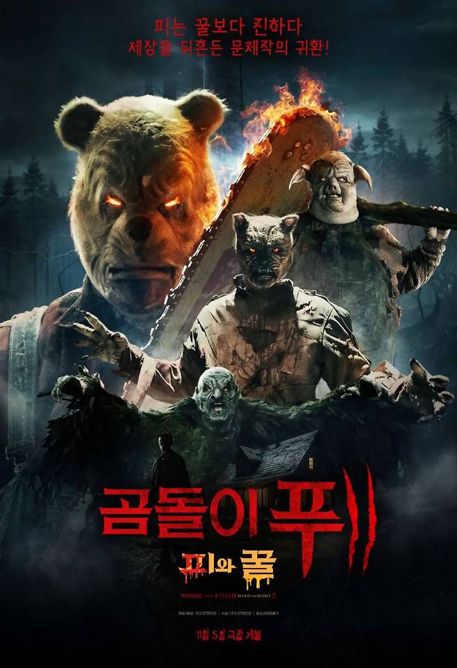 영화는 2023년 개봉한 ‘곰돌이 푸: 피와 꿀’의 후속작이다. 대중에게 익숙한 디즈니 애니메이션이 아니라 A. A. 밀른의 원작 동화 ‘곰돌이 푸(Winnie the Pooh)’를 기반으로 한 슬래셔물이다. 개봉 당시 귀여운 캐릭터가 잔혹한 살인마로 변한다는 설정만으로 큰 화제를 모았지만 평단과 관객의 평가는 혹독했다.