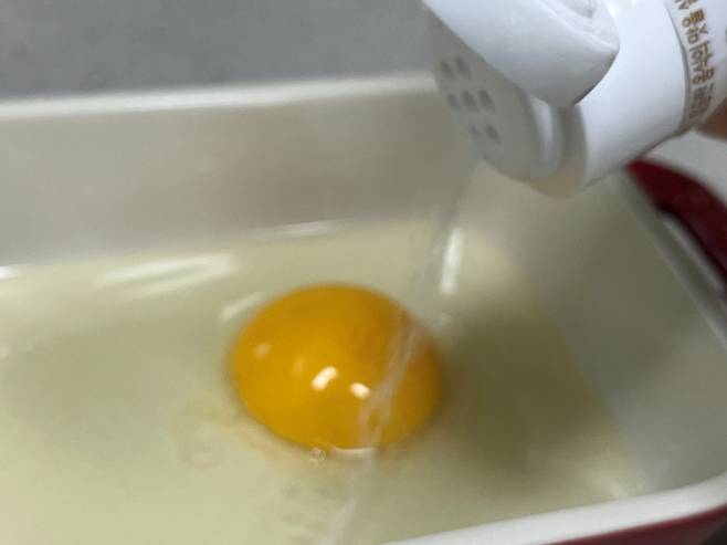 계란을 깨뜨린 다음 맛소금 3꼬집 정도를 넣고 잘 풀어 주세요.