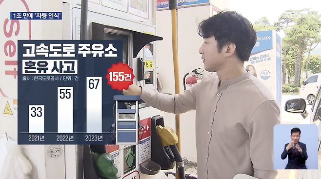 그래서 한국도로공사에서는 고속도로 셀프주유소(중부내륙고속도로, 충주 창원 방향)에 혼유 사고 예방 시스템을 시범 도입하게 되었습니다.