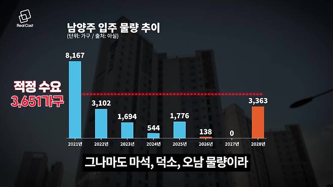 다만 장기적으로는 인근 왕숙신도시 개발이 다산신도시에 영향을 미칠 수 있습니다. 2028년 입주 예정인 왕숙신도시는 약 6만 가구 규모로 계획되어 있으며, GTX-B 노선도 포함되어 있습니다. 이로 인한 공급 증가와 수요 분산은 단기적으로 다산신도시 집값에 조정 요인으로 작용할 수 있는데요. 더 자세한 내용이 궁금하시다면 기사 내 리얼캐스트TV 영상을 클릭해 주세요!