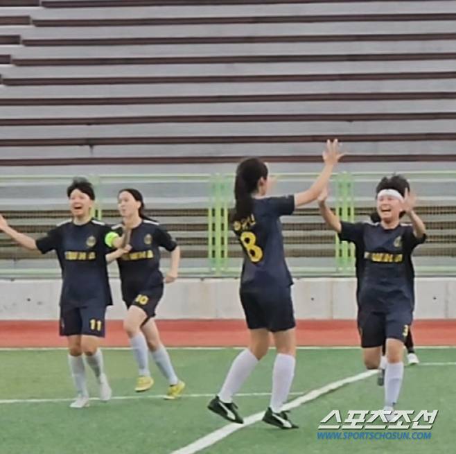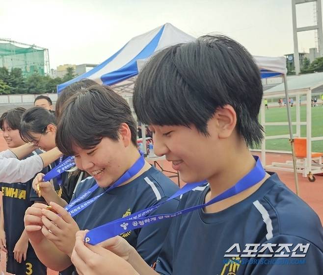 이재은 체육교사는 "작년에 1학년 수업 중 축구가 있었는데 여학생들이 너무 잘 뛰기에 6반 중 8명을 섭외, 팀을 만들었다. 코로나 이후 운동이 필요한 아이들에게 대회 경험을 선물하고 싶었고, 축구를 통해 이기는 법뿐만 아니라 지는 법을 배우게 해주고 싶다는 마음뿐이었는데 다들 푹 빠져서 열심히 하다보니 여기까지 왔다"며 활짝 웃었다. "첫 출전에 우승은 상상도 못한 일"이라고 했다. 여학생들이 축구를 싫어한다는 편견에 일침을 놨다. "정말 기대 이상으로 축구를 좋아하고 열정적으로 참여한다. 아침, 점심 자유시간이 생기면 자발적으로 공을 찬다"고 했다. "'공차소서' 프로그램 공문을 받고, 축구팀 애들에게 '해볼래?'했더니 14명 중 8명이 신청했다. 아이들은 환경만 제공해주면 알아서 한다. 동아리 유니폼을 평소에도 입고 다닌다. 축구부에 대한 애정과 자부심이 크다"고 분위기를 전했다.
