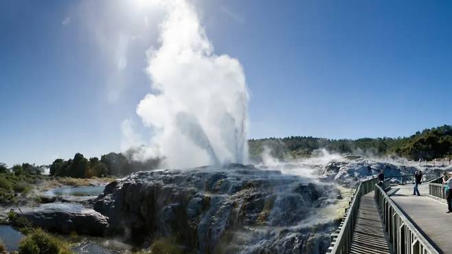 로토루아는 지열지대와 마오리 전통문화가 함께 살아 숨 쉬는 지역이에요. 그중 테 푸이아는 가장 대표적인 종합 관광지로, 간헐천과 머드풀이 활발히 활동하는 자연현상은 물론 키위새 보호소와 마오리 전통 공연도 함께 즐길 수 있어요.