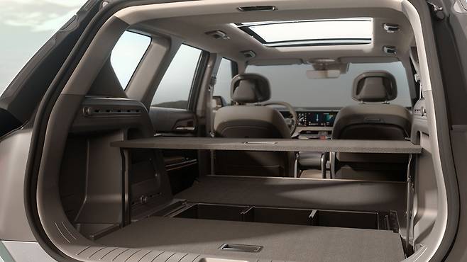 실내는 전기차 특유의 평평한 바닥 구조와 간소화된 조작계를 바탕으로 넓은 개방감을 강조했다. 운전석과 조수석을 가로지르는 파노라믹 와이드 디스플레이(12.3인치 클러스터 + 12.3인치 인포테인먼트 + 5인치 공조 디스플레이)는 시각적 일체감을 제공하며, 물리 버튼을 최소화한 UI 구성으로 현대적인 감각을 전달한다. 2열 시트는 완전 평탄화가 가능해 차박이나 레저 활용성도 높다.