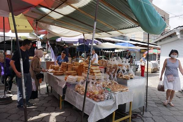| ▲ 키르기스스탄 전통 시장 시장 어딜가나 그들의 주식인 레뾰쉬카 빵 향기가 코를 자극했다. |