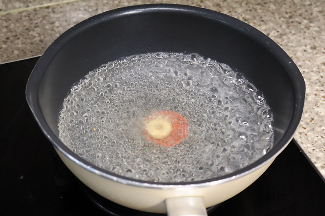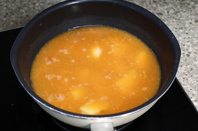 맹물로 끓이면 맛 내기가 쉽지 않으니 코인육수 하나 넣고 끓였어요. 코인육수 없을 땐 국물용 멸치를 넣고 육수를 만들면 돼요.