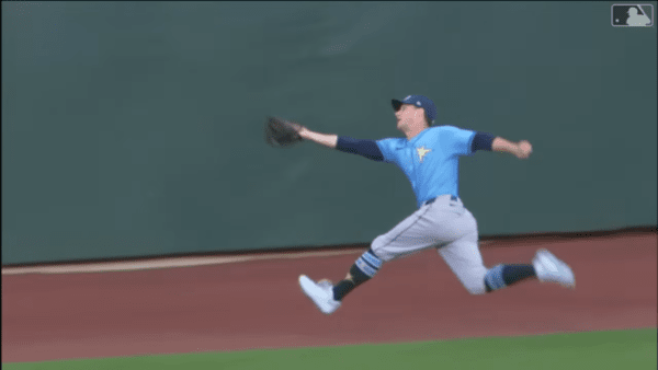 그리고 몽고메리의 9구 가운데로 몰린 슬라이더를 통타했다. 우중간으로 크게 뻗은 타구가 나왔다. 이날 바람이 거세서 외야수가 수비하기 더 까다로운 타구였다. 하지만 우익수 제이크 맹검이 우중간 깊숙한 곳에서 슬라이딩 캐치로 공을 건져냈다.