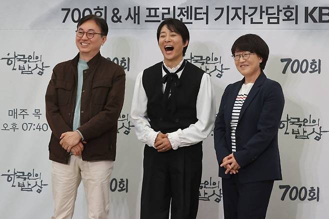 10일 오전 서울 여의도 KBS 신관에서 KBS 1TV '한국인의 밥상' 700회 & 새 프리젠터 기자간담회가 진행됐습니다. 이 자리에는 새 프리젠터 최수종과 임기순 프로듀서, 전선애 작가가 참석해 새로워지는 '한국인의 밥상'에 대한 이야기를 나눴습니다.
