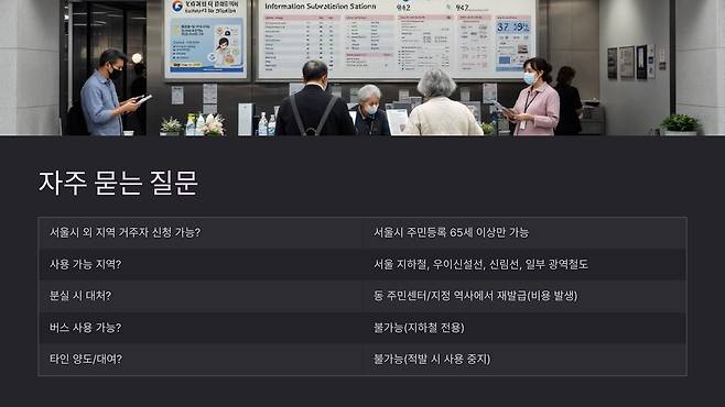 ์์ธ์์ ๊ฑฐ์ฃผํ๋ 65์ธ ์ด์ ์๋ฏผ์ด๋ผ๋ฉด ๋๊ตฌ๋ ์ ์ฒญํ ์ ์์ต๋๋ค. ์นด๋ ๋ฐ๊ธ์ ์คํ๋ผ์ธ ๋ฐฉ๋ฌธ์ ํตํด ์งํ๋๋ฉฐ, ๋ฐ๊ธ ํ ์ฆ์ ์ฌ์ฉ ๊ฐ๋ฅํฉ๋๋ค.