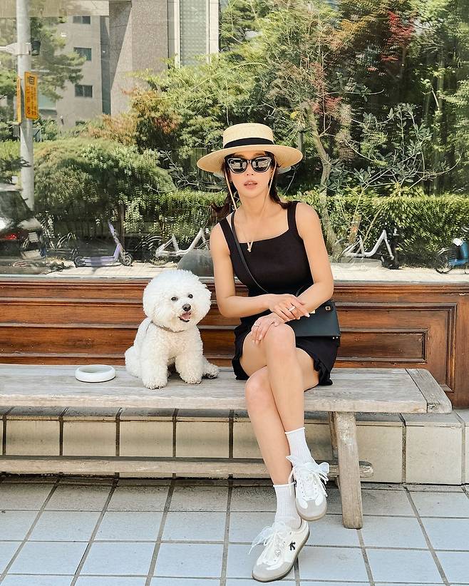 사진 속 기은세는 뒷부분의 프릴이 포인트인 블랙 미니 원피스와 밀집모자를 쓰고 러블리하면서 내추럴한 코디를 선보였다.