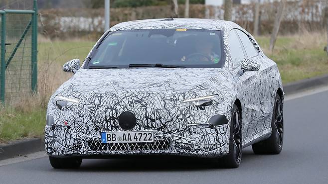 메르세데스 벤츠는 C클래스 일렉트릭 외에도 내연기관 A클래스 해치와 세단을 대체하기 위해 더 작은 올 일렉트릭 CLA를 출시할 계획이다. 독일 뉘르부르크링 서키트에서 주행 테스트 중인 프로토 타입이 카메라에 포착됐다. 더욱 강력한 배터리 전기 CLA의 또 다른 이미지이다.