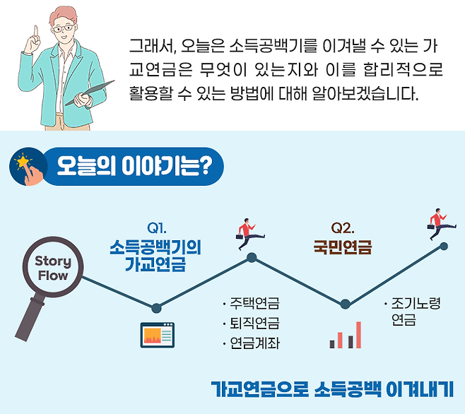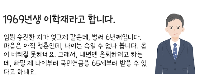 얼마 전 뉴스를 보니 퇴직 이후부터 노령연금 수급 시작 전까지 ‘소득공백기’ 타격이 의료비 지출이 많은 고령층 가구에 훨씬 크다고 하던데요.