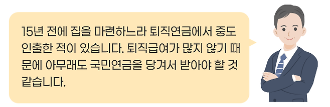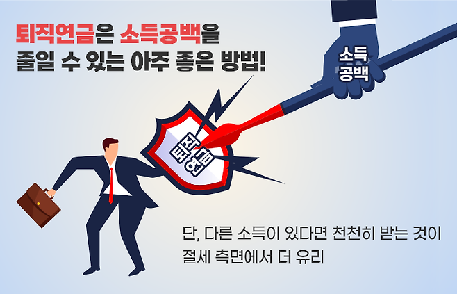 소득공백 시기는 보통 막 퇴직한 사람이 마주치는 상황이므로 퇴직급여를 먼저 사용하려고 하는 분들이 많습니다.