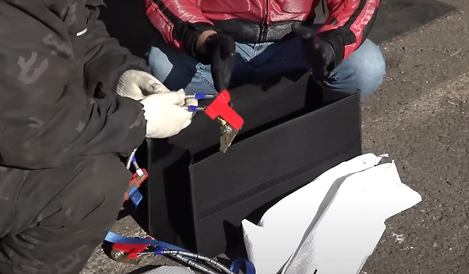 그런데 뉴스와는 달리 저희가 알고 있는 전문가들에 의하면 마찰에 의해 뉴스에서처럼 호스가 절단되는 것은 거의 불가능하며 스노우 체인을 장착할 때 호스까지 체인으로 묶어 주행 시 절단이 됐을 것이라는 의견이 많았습니다.