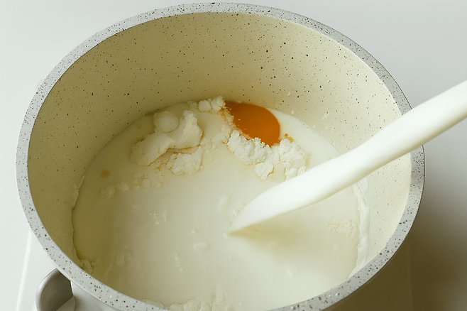 계란, 우유, 설탕, 전분만 있으면 카페에서 먹는 듯한 디저트를 만들 수 있다. 별다른 장비도 필요하지 않다. 냄비와 스푼, 그리고 에어프라이어만 있으면 완성된다. 노른자의 고소함, 우유의 부드러움, 설탕의 은은한 단맛이 어우러지며 입안에서 녹아내리는 식감을 느낄 수 있다.