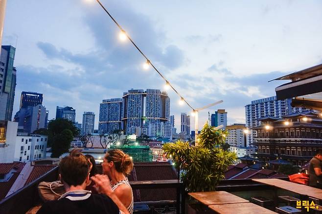 차이나타운의 클럽 스트리트는 싱가포르에 거주하는 외국인들과 현지인들이 찾는 트렌디한 골목으로 싱가포르에서 맛있는 음식과 음료를 즐길 수 있는 명소이기도 하다. ‘프라이 루프탑 비스트로&바(Fry rooftop bistro&bar)’는 화려하고 격식 있지는 않지만, 편안하고 캐주얼하게 즐기기 좋은 곳이다. 클럽 스트리트의 인파와 소음 사이를 뚫고 가파른 계단을 오르면 나타나는 프라이 루프탑 비스트로&바는 엔시앙 힐 및 주변 지역의 멋진 전망과 함께 프라이빗하고 차분한 분위기를 누릴 수 있다. 화려한 아경보다는 소소하고 아름다운 밤의 낭만을 즐기기에 좋다.