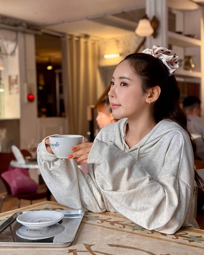 클레오 채은정은 그레이 후드티와 실크 스크런치로 홈카페 감성을 완벽하게 연출하고 있다. 오버사이즈 후드티의 여유로운 핏과 머리에 포인트로 착용한 실크 스크런치가 편안하면서도 세련된 분위기를 자아낸다. 오렌지 네일 컬러가 전체적으로 차분한 톤의 의상에 생동감을 더하며, 일상 속에서도 스타일을 놓치지 않는 센스를 보여준다.