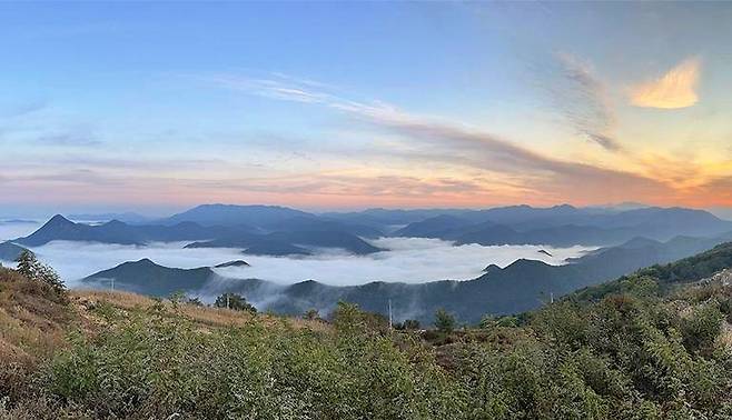 산 전체가 청정 자연으로 둘러싸여 있어 올라오는 길부터 이미 공기가 다르며, 정상에 도착하면 막힘 없는 풍광이 시야를 확 열어 준다.