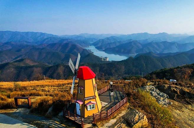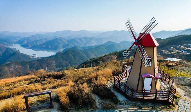 정상부에는 풍차와 호수가 조화를 이루는 포토존이 자리해 인증샷을 남기기 좋고, 날씨가 맑은 날에는 산 능선이 겹겹이 펼쳐지는 그림 같은 풍경을 만날 수 있다. 드라이브로 떠난 여행 중 잠시 들르기만 해도 충분히 힐링이 되는 곳이다.