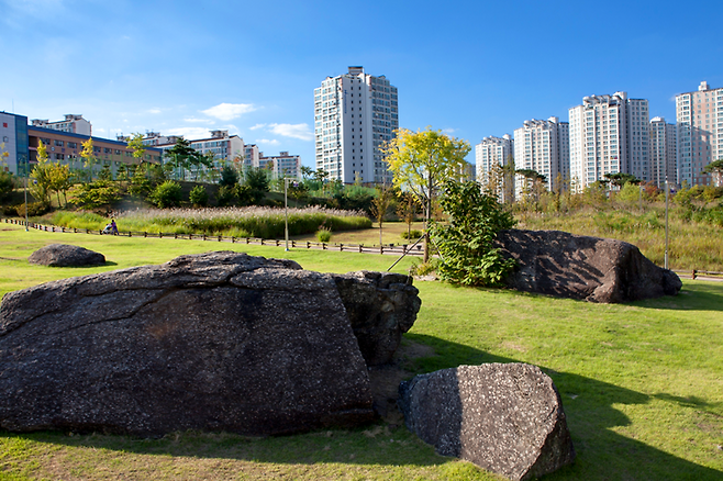 오산에 위치한 역사적인 고인돌 공원은, 고인돌 공원이라는 이름에 걸맞게 고인돌의 유적들이 잘 보존되어 있는 휴식처입니다. 이곳은 선사 시대의 고인돌(돌무덤)을 중심으로 다양한 꽃과 나무들이 도심 속에서 노래를 부르며 오산 시민들에게 활기를 제공합니다.