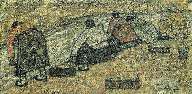๋ฐ์๊ทผ์ด ๊ทธ๋ฆฐ ๊ฑด ์ธ๋ฌผํ๋ง์ด ์๋์์ด์. ์ง๊ณผ ๊ฐ์ ์ฅ์๋ ๊ทธ์ ์ํ์ ๋จ๊ณจ ์์ฌ์์ฃ . ์ง์ ๊ทผ์์ ์ด๊ณ ๋ฐ๋ปํ ์์์ฒ์ ์ ์ผ ์ผ์์ ์ธ ์ํ์ ๊ณต๊ฐ์ด๋ผ๋ ์ด์ค์ ์๋ฏธ๋ฅผ ๋ํ๋ด๋ ์์ฌ๋ก, ์ผ์์ ์ด๊ณ ํ๋ฒํ ๋์์ ๋ฐ๋ปํ ์์ ์ผ๋ก ๋ด์๋ธ๋ค๋ ๊ทธ์ ์ ๋ ๊ณผ ์ ๋ง์๋จ์ด์ง๋ ๋์์ด์์ด์. ์ด๊ธฐ์๋ ์ด๊ฐ์ง๊ณผ ๊ทธ๊ณณ์์ ์ผํ๋ ๋์ด์ ์ฌ์ธ๋ค์ ๊ทธ๋ ธ๋ค๋ฉด, ์๊ฐ์ด ํ๋ฅด๋ฉด์ ๋์ํ ํ์ฅ๊ณผ ์์ธ ๋ณ๋๋ฆฌ์ ํ์ฃ์ง ๋ฑ ๋ค์ํ ๋์ ํ๊ฒฝ์ ๊ทธ๋ ค๋์ฃ . ๊ทผ๋ํ๋ฅผ ๊ฒช๋ ํ๊ตญ์ ์ฌ์ค์ ์ธ ๋ชจ์ต์ ์ฟ๋ณผ ์ ์๋ ๊ทธ์ ๊ทธ๋ฆผ์ ๋ง์น ๊ทผ๋ ํ๊ตญ์ ์ด์ํ ๊ฐ๊ธฐ๋ ํด์.