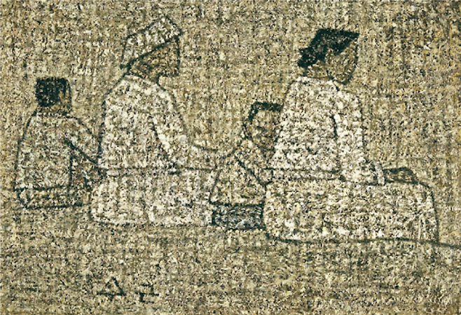ํนํ ์ฌ์ง์ ์ฐ์ถํ์ด์. ํ๊ฐ์์ ํ๋ฉด ๊ฐ์ ์ง๊ฐ์ ์ํด ๋์ดํ๋ก ๋ง์น ์ ํ๊ธฐ๋ ํ์ฃ . ์ด๋ฐ ๊ธฐ๋ฒ์ด ์ฐ์ถํ๋ ํน์ ์ ํฌ๋ฐํ ์ง๊ฐ์ ๊ทธ๋ฆผ์ ํ๊ตญ์ ์ธ ์์ ๋ํ๊ณ , ๊ทธ๋ฆผ์ ๊ทธ๋ ค์ง ์๋ฏผ์ ๊ณ ๋จํ ์ถ์ ํจ๊ณผ์ ์ผ๋ก ๋๋ฌ๋ธ๋ค๊ณ .