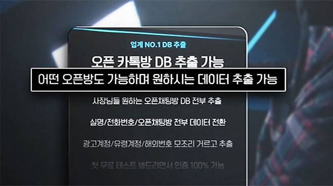 문제가 불거진 건 지난해 3월쯤입니다. 당시 오픈채팅방 이용자 정보를 판매한다는 글이 은밀하게 나돌았습니다. 홍보 글에는 "어떤 오픈방도 가능하다", "실명과 전화번호도 추출할 수 있다"는 내용이 들어가 있습니다. 유령계정도 다 거를 수 있다고 자세히 홍보했습니다. 오픈채팅방에는 특정 주제에 관심을 가진 사람들이 익명으로 모이기 때문에 데이터 가치는 높게 책정됐습니다. 한 명당 7천 원에서 많게는 2만 원까지 요구하는 경우도 있었습니다.