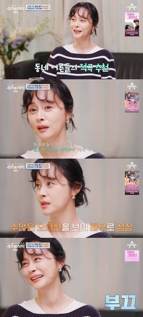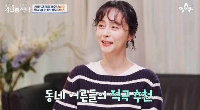 2024년 방송된 채널A ‘절친 토큐멘터리-4인용식탁’에서는 29년 차 배우 송선미가 25년 지기 이자 허물없는 사이인 배우 우희진을 비롯해, 힘든 시절 작품을 같이했던 고은미, 강연을 보고 반해 댓글과 DM으로 적극 대시하면서 절친이 된 관계전문가 손경이를 초대해 이야기를 나누는 모습이 펼쳐졌습니다.