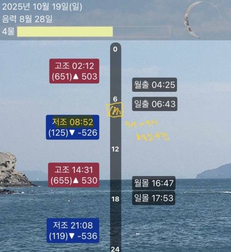 오전 8시 52분, 물때는 4물,