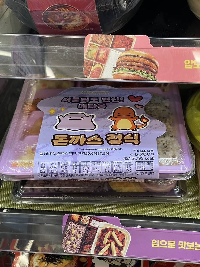 메타몽 콘셉트로 꾸민 귀여운 비주얼의 돈까스 정식으로 보는 재미가 있어요.