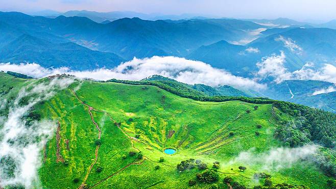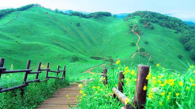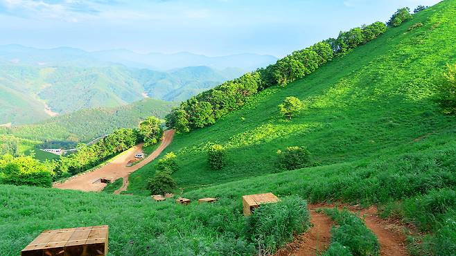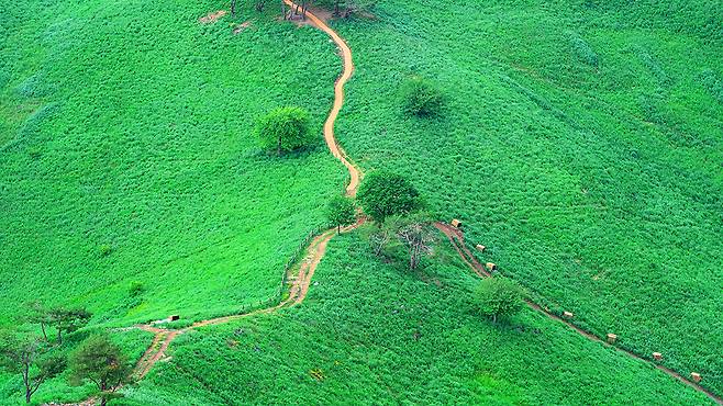 과거 주민들은 고려엉겅퀴라 불리는 곤드레나물을 채취하기 위해 매년 산에 불을 놓았습니다. 이러한 방화의 역사가 반복되면서 7부 능선 위로는 나무가 사라지고 약 66만 제곱미터에 달하는 광활한 초지가 형성되었습니다.