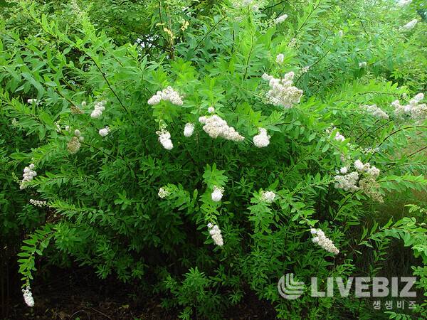 꽃이 여우의 부드러운 꼬리처럼 생긴 조팝나무다. 조팝나무 중 가장 늦은 초여름에 꽃을 피운다. 꽃이 아름다워 꽃꽂이용으로도 활용된다.
