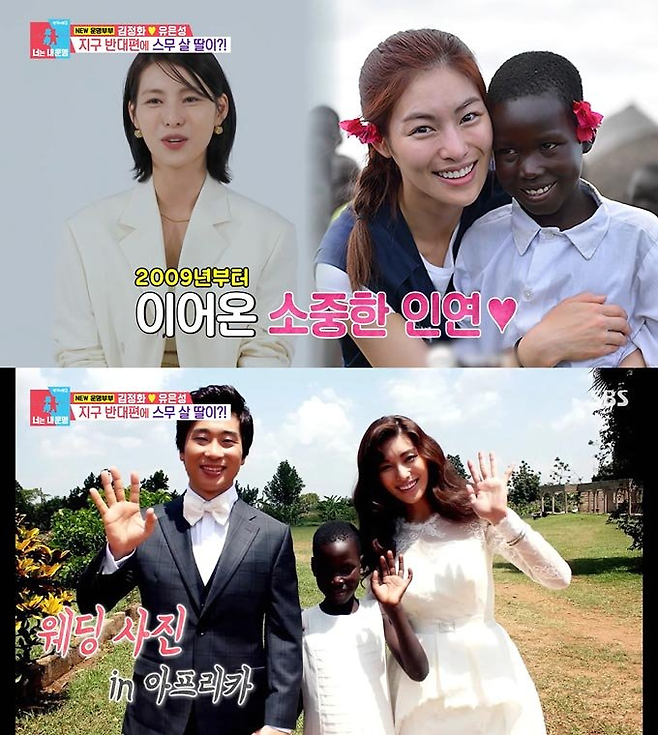 김정화는 2009년 우간다에서 에이즈에 걸려 부모에게 버려진 6세의 고아소녀 아그네스와 처음 인연을 맺게 되었고, 봉사활동을 통해 만난 유은성과도 부부의 인연을 맺게 되었는데요.