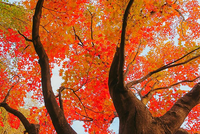 ▶ 날씨가 맑은 날엔 산책로 곳곳이 단풍터널로 변해 인생사진 명소가 됩니다.