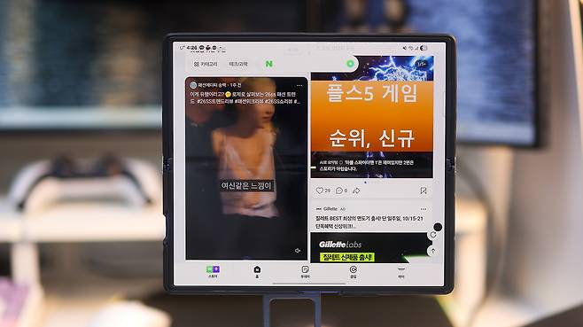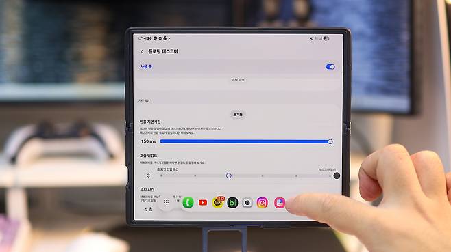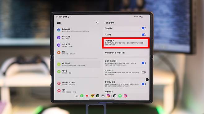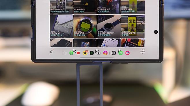 하단 앱줄(태스크바)은 여러 앱을 빠르게 전환할 수 있어 편리하긴 합니다. 하지만 폴드7처럼 화면이 큰 기기에서는 이 줄이 시선을 계속 끌어내려요. 특히 글을 읽거나 웹페이지를 볼 때는 눈이 자꾸 아래쪽으로 향해 집중이 흐트러지는 느낌이 생깁니다.