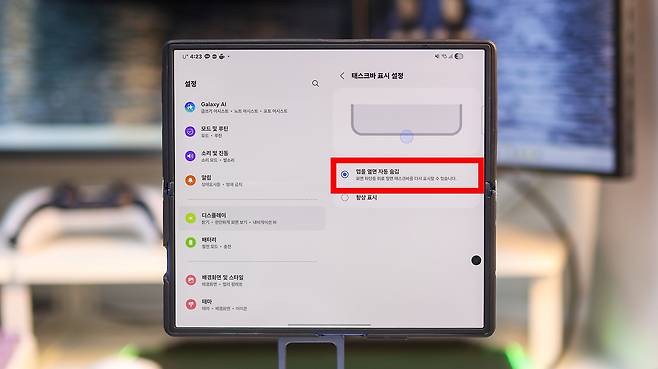 갤럭시 Z폴드7은 큰 화면 덕분에 멀티태스킹에 최적화되어 있지만, 그만큼 시선이 분산될 때도 많습니다. 하단 앱줄(태스크바)을 자동으로 숨기는 건 단순히 공간 정리가 아니라, 몰입감을 되찾는 설정입니다.