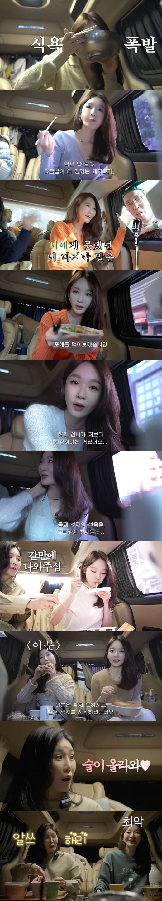 [마이데일리 = 오윤주 기자] 여성 듀오 다비치 멤버 이해리, 강민경이 차 안 먹방으로 눈길을 끌었다.