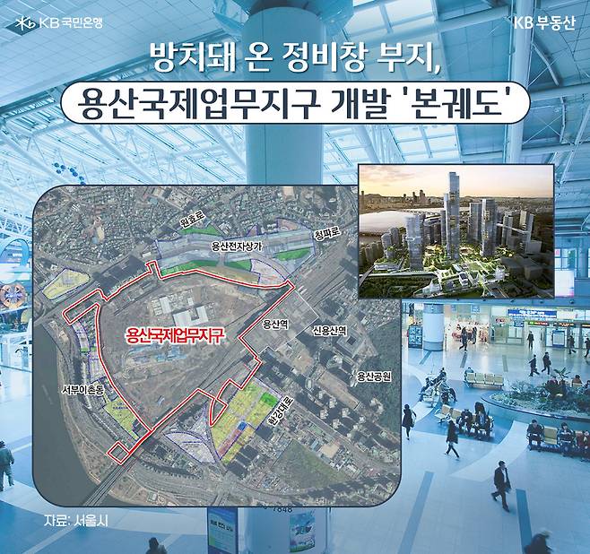 용산국제업무지구 개발이 다시 속도를 내면서 인접한 이촌, 삼각지, 한강로 일대도 주목받고 있습니다. 교통 인프라 및 정주여건 확충과 국제비즈니스허브 조성 기대감이 맞물리면서 지역 전체 부동산 가치가 재조명되고 있는 것인데요. KB부동산이 용산국제업무지구의 개발 현황 및 미래가치를 짚어봤습니다.