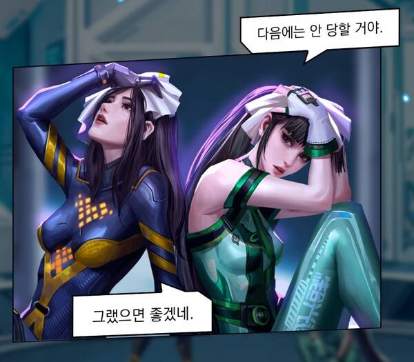 훈련을 마친 이브는 "다음에는 안 당할 거야"라며 다음을 기약했다. 타키는 "그랬으면 좋겠다"고 말한다. 7차 강하 프로토콜이 실행되어 마지막 훈련일 수도 있었기 때문이다. 타키는 이브에게 "곧 등을 맞대고 함께 싸우겠지. 전쟁은 나보다는 네게 더 벅찰 거야"라고 걱정한다.