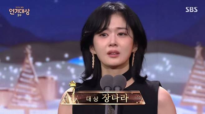 끝내 눈물을 보이며 "앞으로도 궁금한 배우로 남고 싶다. 정말 열심히 하겠다. 진심으로 감사드린다"라는 소감을 전한 장나라. 데뷔 23년 만에 연기대상을 거머쥔 그녀에게 아낌없는 축하와 박수가 쏟아졌다.