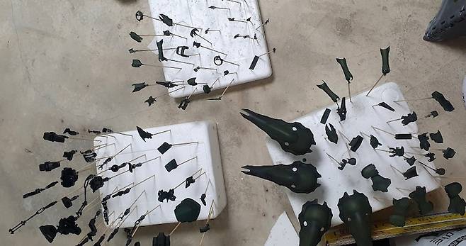 프라모델&피규어 도색은 짝꿍의 오랜 취미였는데 연애와 결혼으로 바쁘기도 하고 장소 여건도 마땅찮아서 조립과 수집만 하고 도색은 못한지 꽤 됐었거든요. (창고에 미개봉 박스 천국...)