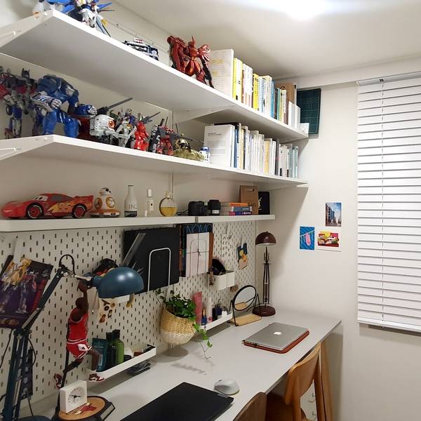 저희 집 서재는 협소하지만 2인용으로 계획했었는데 저의 재택으로 온전히 제 차지가 되어버려서 짝꿍은 자리도 뺏겨 아랫집으로 쪼르르 가서 쭈굴탱으로 도색하는 게 귀엽기도, 안쓰럽기도 하고. 어디 놀러 갔다가 돌아오는 고속도로 안에서 우리의 취미 공간으로 사용하기로 급 타결, 전개되었습니다.