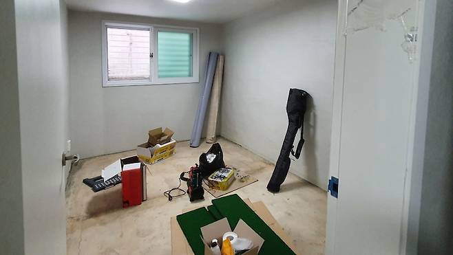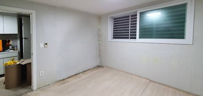 세입자가 나간 후 집을 바싹 말리기 위해서 장판은 걷어 놓은 상태였습니다.