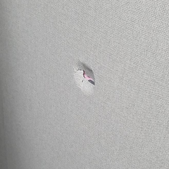 우려했던 일은 생각보다 빨리 일어났어요. 아주 빨리. 시험 삼아 쳐봤던 공이 생크가 나서 벽을...뚫어버렸습니다.