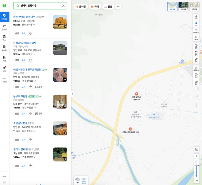 반계리 은행나무의 상태가 궁금하다면, 네이버 지도의 CCTV 기능을 이용해보세요. 모바일에서 네이버 지도에 접속한 뒤, 다음 단계를 따라주시면 쉽게 확인할 수 있답니다.