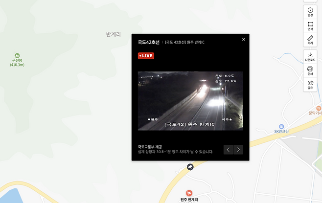 검색 결과에서 도로에 위치한 CCTV 아이콘을 클릭합니다.
