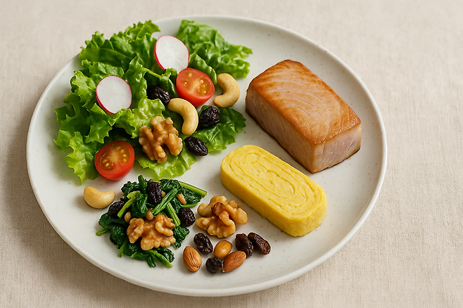 햇빛 노출이 적은 분들은 연어, 고등어, 계란 노른자, 표고버섯 섭취가 도움이 됩니다.예: 고등어 구이 + 달걀찜 + 나물