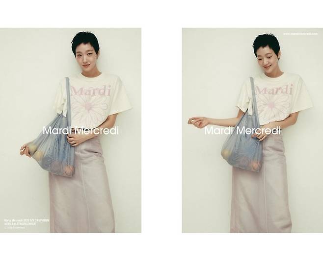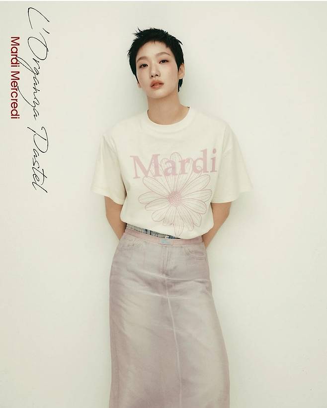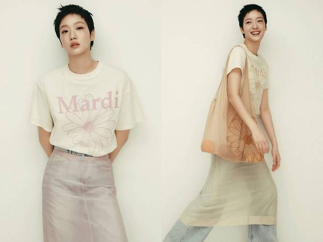 이는 단순한 캐주얼을 넘어선, 예술적인 스타일링으로 시선을 압도했으며, 어깨에 툭 걸친 같은 프린팅의 시스루 백은 룩의 연속성을 높이며 김고은 특유의 감성적 미니멀리즘을 완성했습니다.