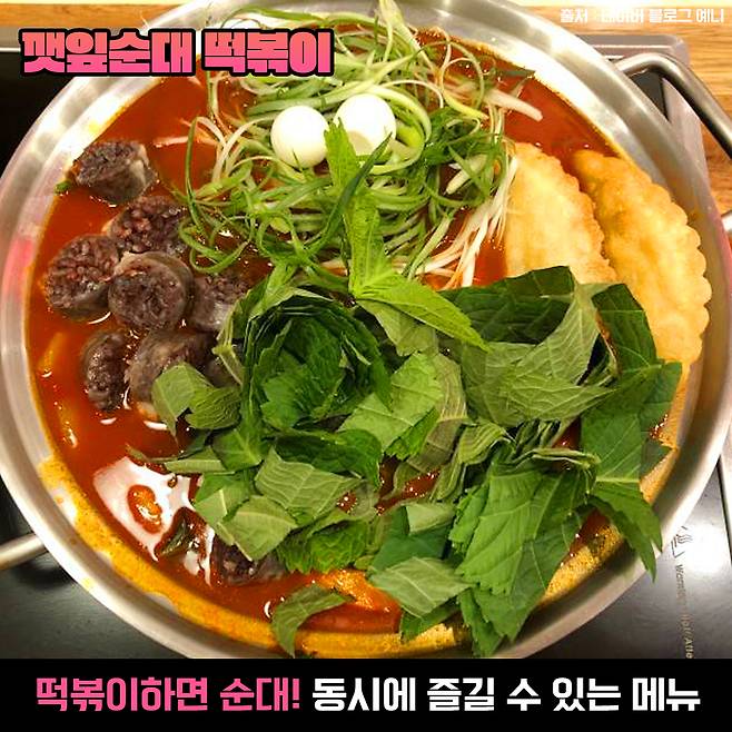 역시 떡볶이 하면 빠질 수 없는 순대! 떡볶이와 순대는 완벽한 짝꿍 아닐까요? 떡볶이와 순대가 같이 나온다니! 그리고 같이 먹으면 더 맛있는 깻잎까지 듬뿍 넣어서 깻잎 향이 솔솔 나는데 이게 입맛을 더 돋게 하네요. JMT 조합 인정합니다.