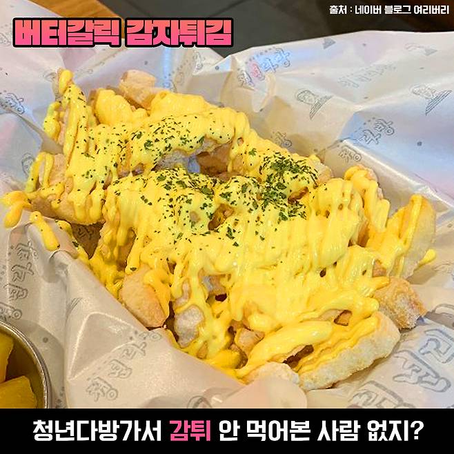 버터갈릭 감자튀김은 달달하고 고소해서 매콤한 떡볶이와 환상의 궁합을 자랑한답니다. 앞에서 말했듯이 이거 먹으려고 청년다방 가는 분들? 손들어 주세요.. 혹시 안 먹어봤다면 이번엔 무조건 시켜보세요!